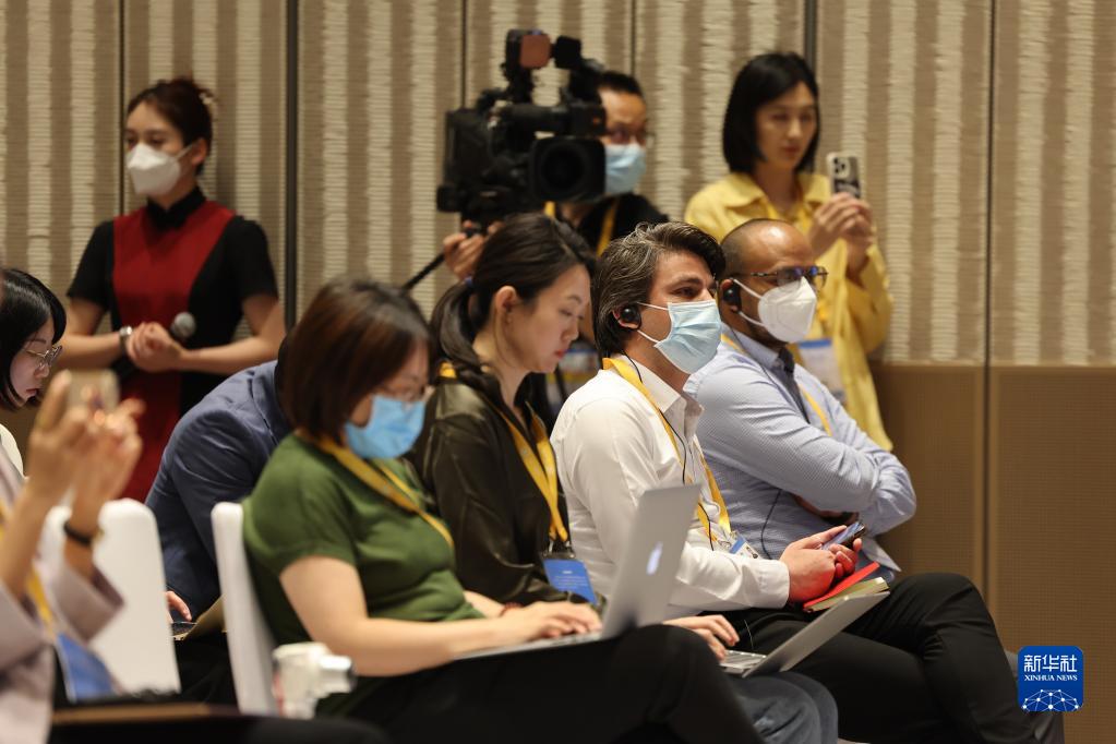 5月16日,中国-中亚峰会新闻中心举行首场吹风会,邀请外交部欧亚司、文旅部国际交流与合作局、中国贸促会国际联络部有关负责人介绍峰会情况并回答记者提问。这是记者在现场提问。新华社记者 徐子鉴 摄