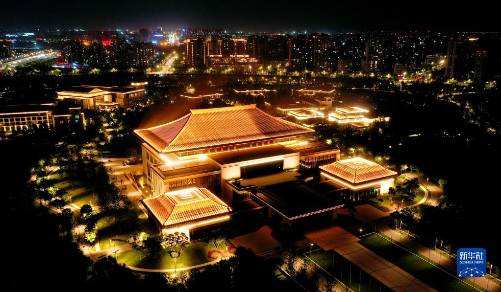 位于西安浐灞生态区的西安国际会议中心(5月1日摄,无人机照片)。
