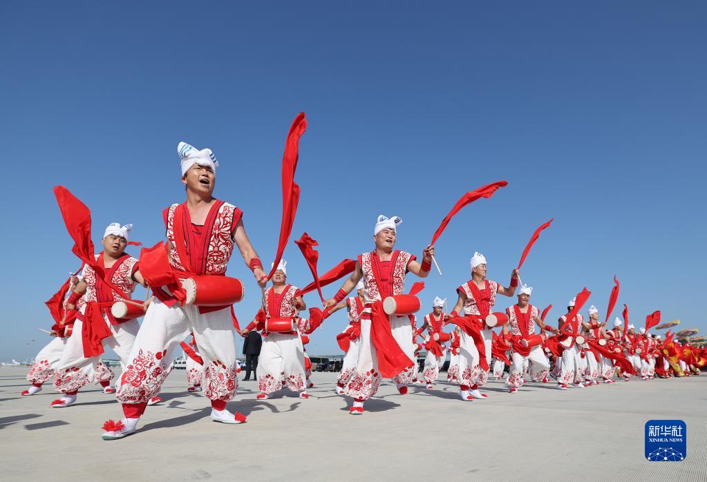 5月18日上午,出席中国-中亚峰会的土库曼斯坦总统别尔德穆哈梅多夫抵达陕西省西安市。这是欢迎仪式现场。