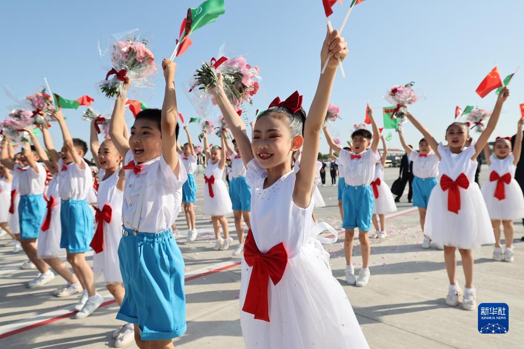 5月18日上午,出席中国-中亚峰会的土库曼斯坦总统别尔德穆哈梅多夫抵达陕西省西安市。这是欢迎仪式现场。