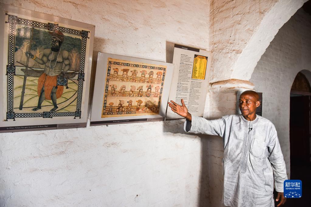 4月12日,在喀麦隆西部大区丰班,巴蒙王宫博物馆向导介绍巴蒙王朝的历代国王。