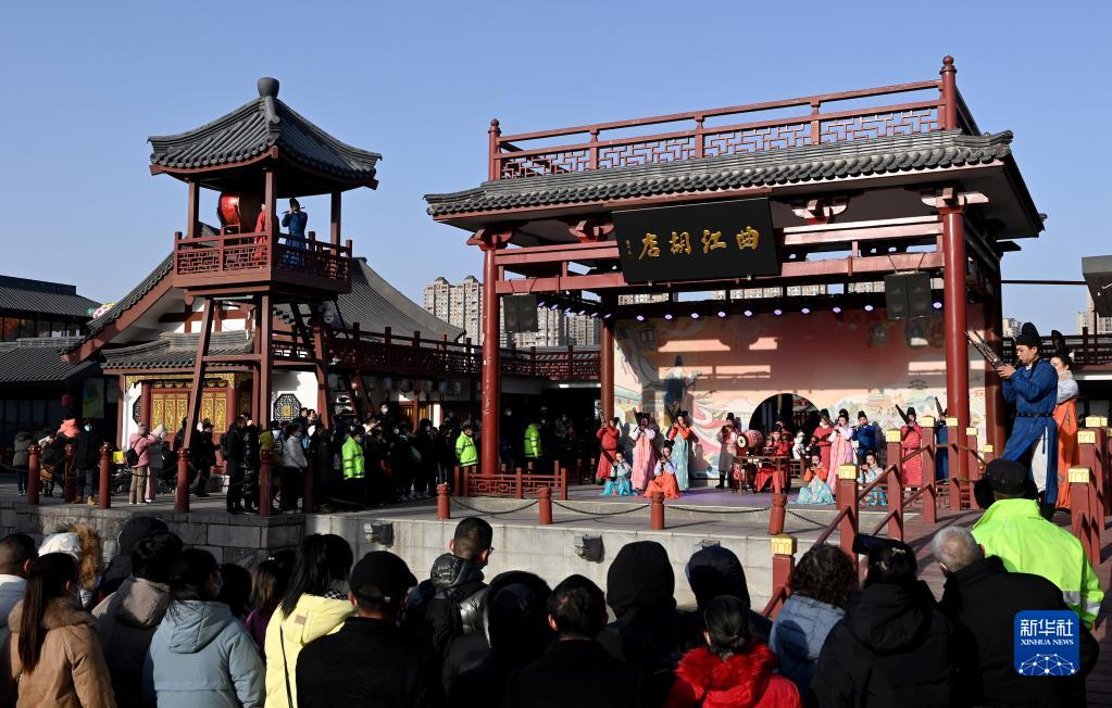西安大唐芙蓉园内的西安鼓乐演出(1月24日摄)。