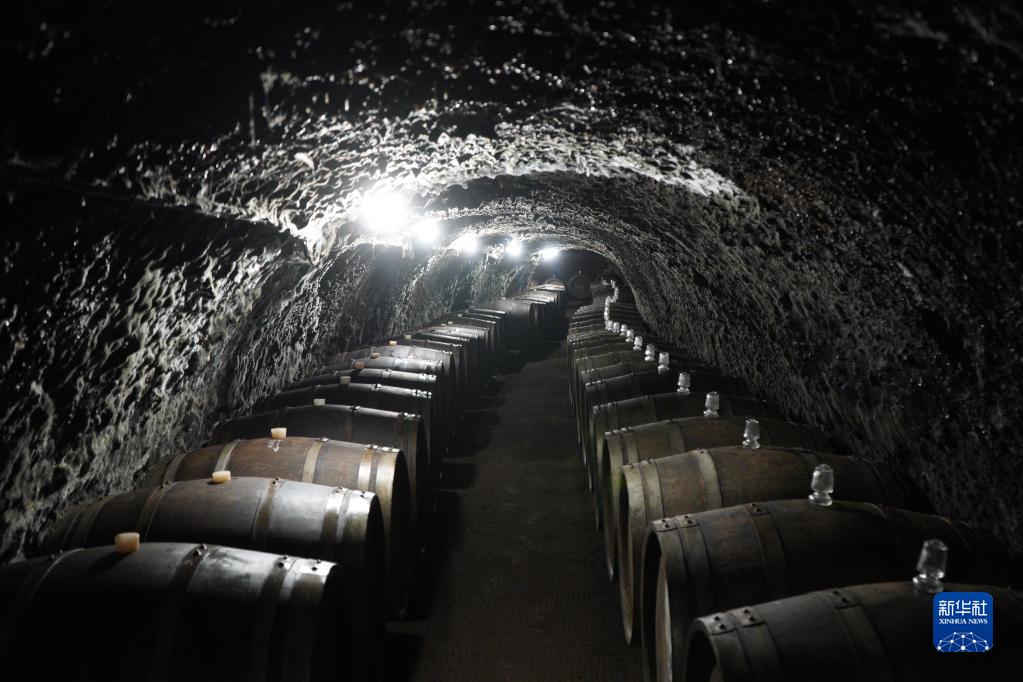 这是5月11日在匈牙利托卡伊拍摄的鲍比茨酒庄的酒窖内景。