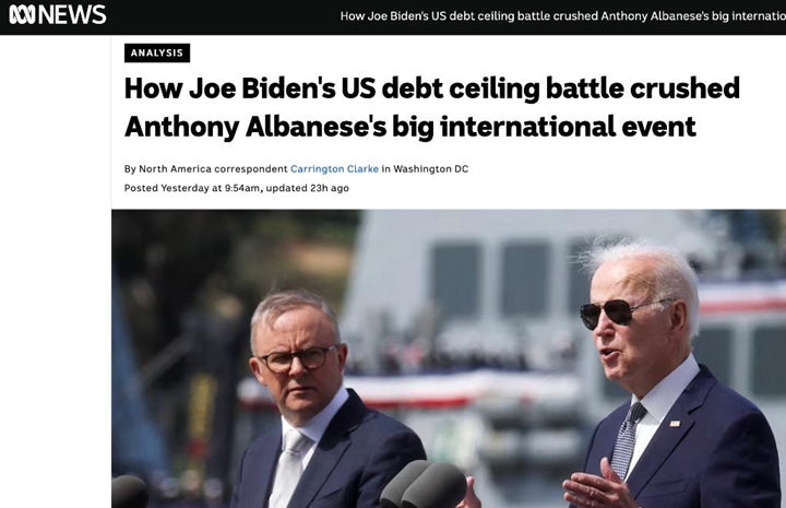 澳大利亚广播公司的一篇报道标题更直白——《拜登的债务上限之战如何搞砸阿尔巴尼斯的国际大事》。