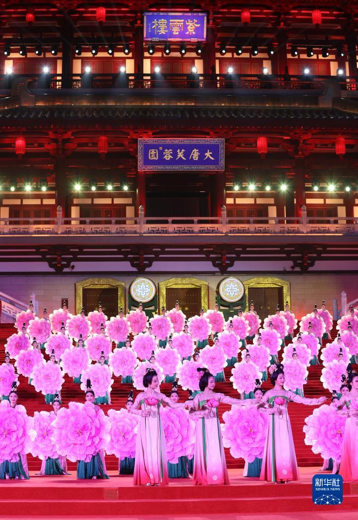 5月18日晚,出席中国-中亚峰会的中亚国家元首夫妇陆续抵达陕西省西安市大唐芙蓉园,参加在这里举行的欢迎仪式。这是演员在欢迎仪式上表演。新华社记者 徐子鉴 摄