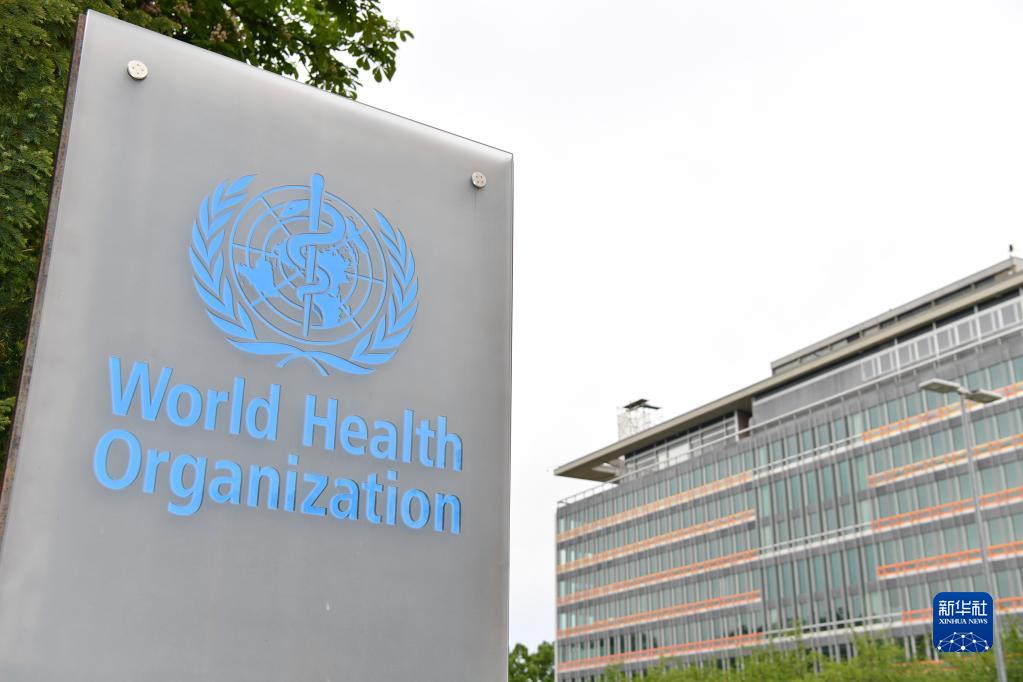 这是5月21日在瑞士日内瓦拍摄的世界卫生组织标志和世卫组织总部大楼。