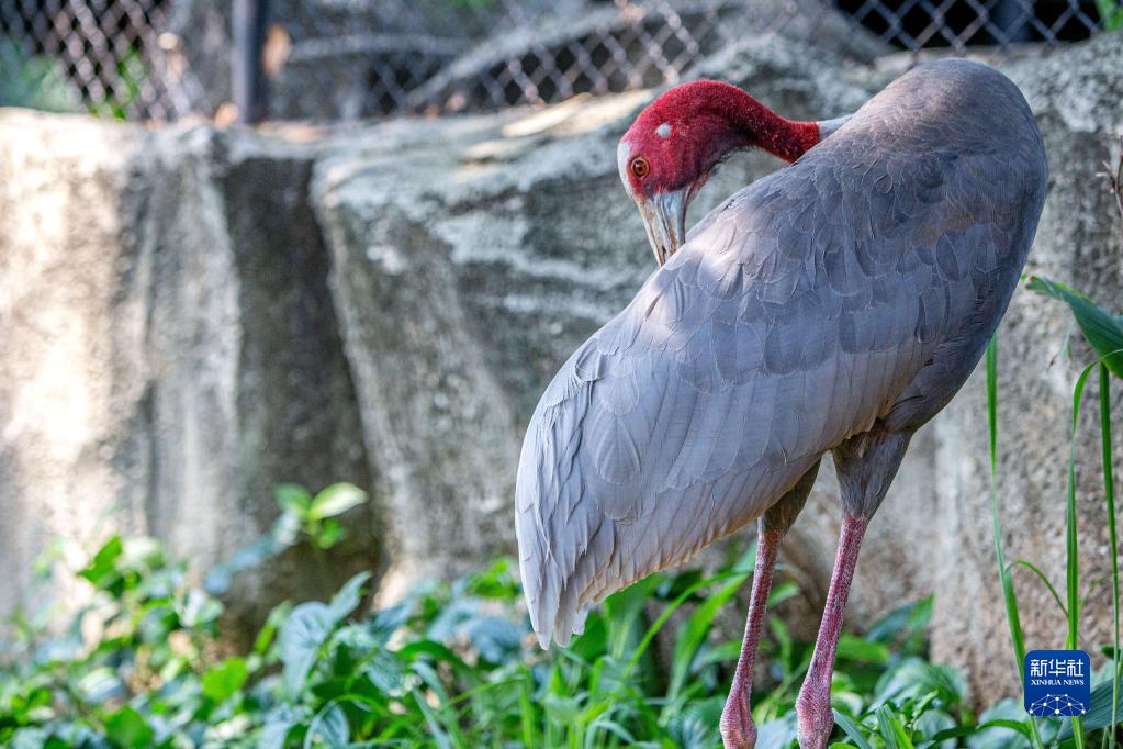 这是5月16日在泰国呵叻府动物园赤颈鹤保育中心拍摄的赤颈鹤。