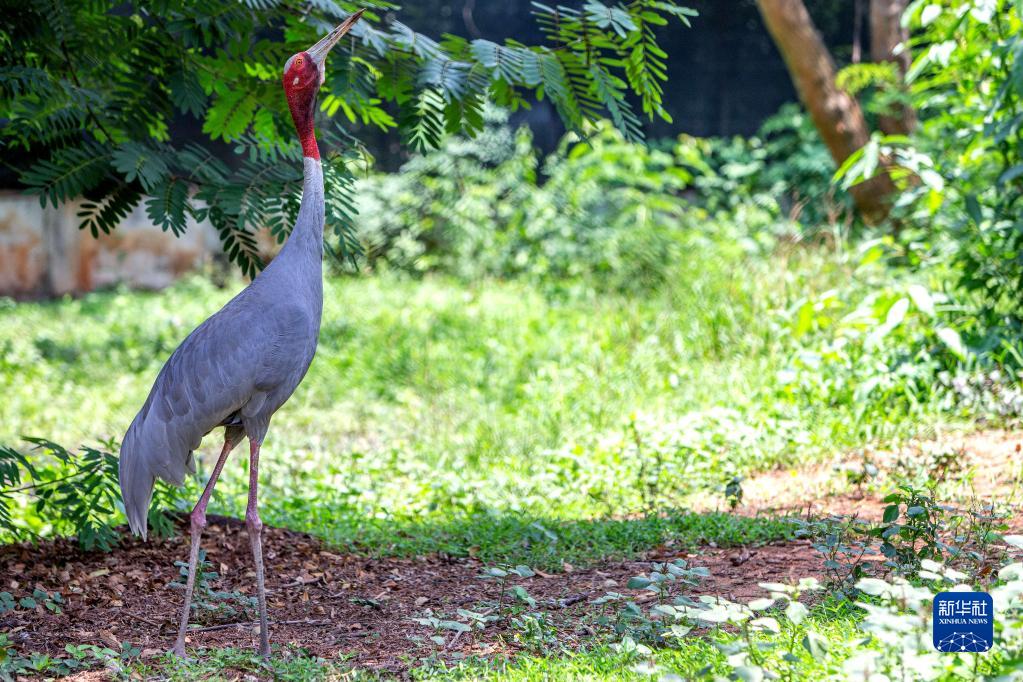 这是5月16日在泰国呵叻府动物园赤颈鹤保育中心拍摄的赤颈鹤。