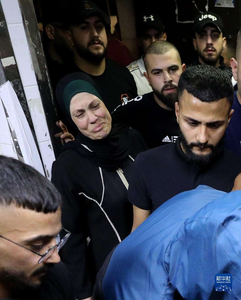 5月22日,在约旦河西岸城市纳布卢斯一家医院,家属哀悼死去的亲人。