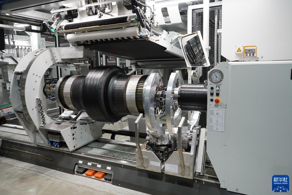 这是5月22日在柬埔寨西哈努克港经济特区拍摄的通用股份柬埔寨轮胎生产基地内部。