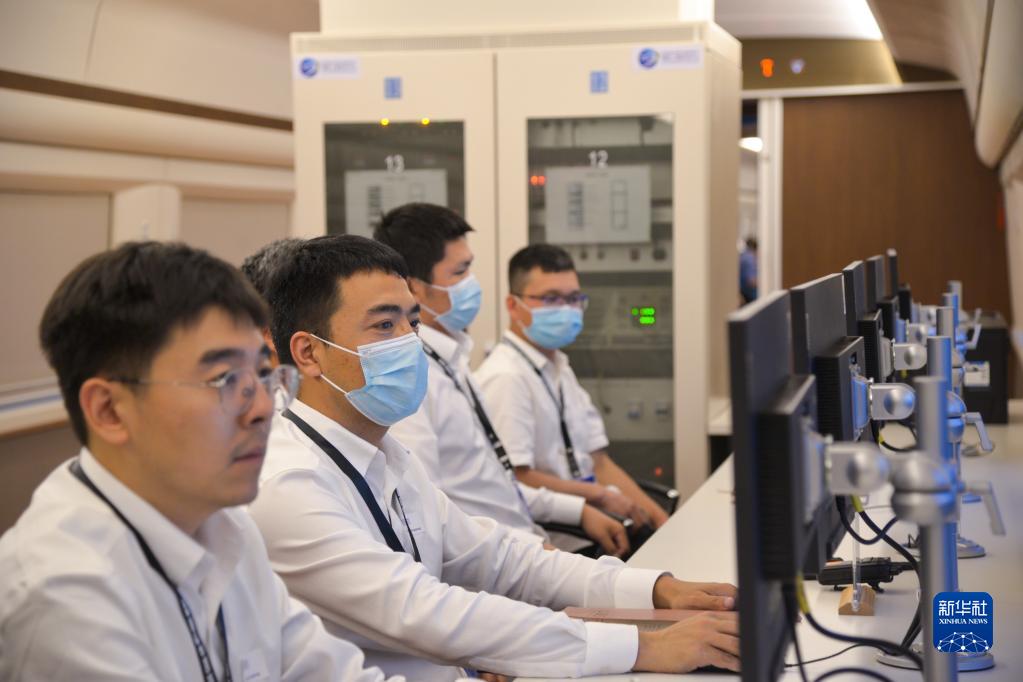 5月22日,在印度尼西亚雅万高铁沿线,工程师在进行联调联试的雅万高铁综合检测列车上进行接触网检测。