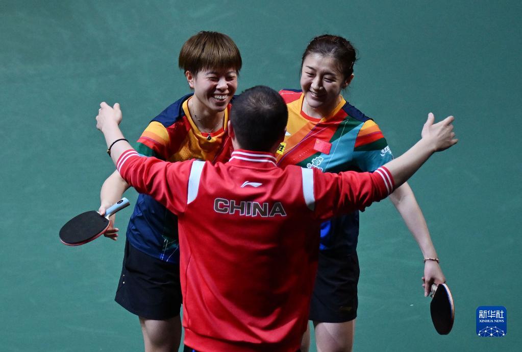 当日,在南非德班进行的2023年世界乒乓球锦标赛女子双打决赛中,中国选手陈梦/王艺迪以3比0战胜韩国选手田志希/申裕斌,夺得冠军。