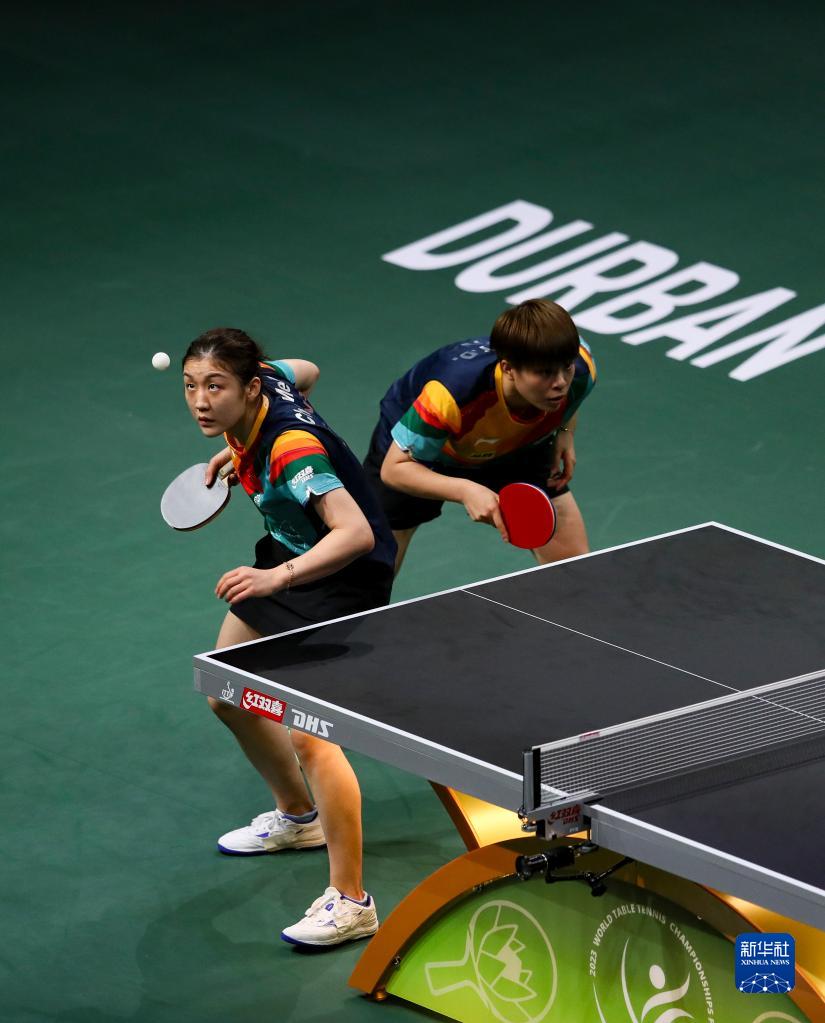 当日,在南非德班进行的2023年世界乒乓球锦标赛女子双打决赛中,中国选手陈梦/王艺迪以3比0战胜韩国选手田志希/申裕斌,夺得冠军。