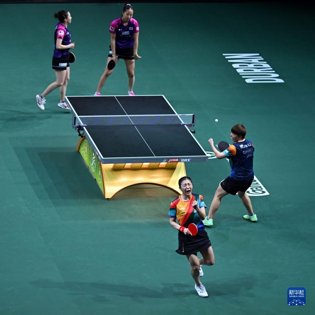 当日,在南非德班进行的2023年世界乒乓球锦标赛女子双打决赛中,中国选手陈梦/王艺迪以3比0战胜韩国选手田志希/申裕斌,夺得冠军。