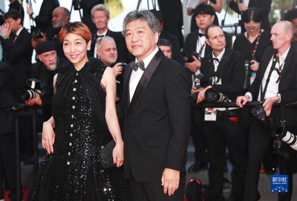 5月27日,日本影片《怪物》的导演是枝裕和(右)和演员安藤樱在法国戛纳国际电影节踏上闭幕式红毯。