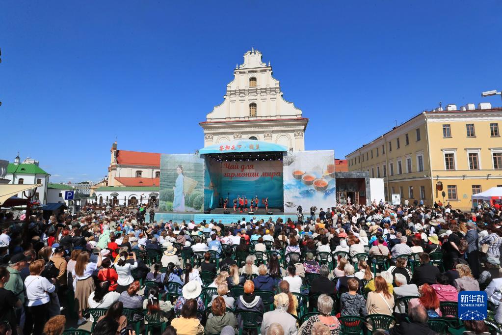 5月27日,人们在白俄罗斯首都明斯克观看“茶和天下·雅集”活动的节目表演。新华社发(任科夫摄)