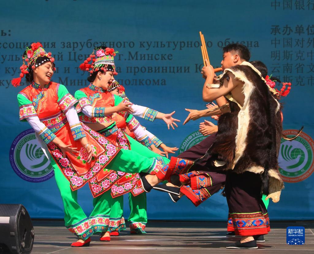 除了茶文化体验外,自由广场上还搭建了大型舞台,中白歌舞表演赢得掌声不断。白族扎染、彝族刺绣和剪纸、民族歌舞等非物质文化遗产展示也让当地民众眼前一亮。媒体从业者巴维尔说:“我们市民已有三年时间没有这么好的机会感受中国文化了!我很珍惜此次体验机会!”
