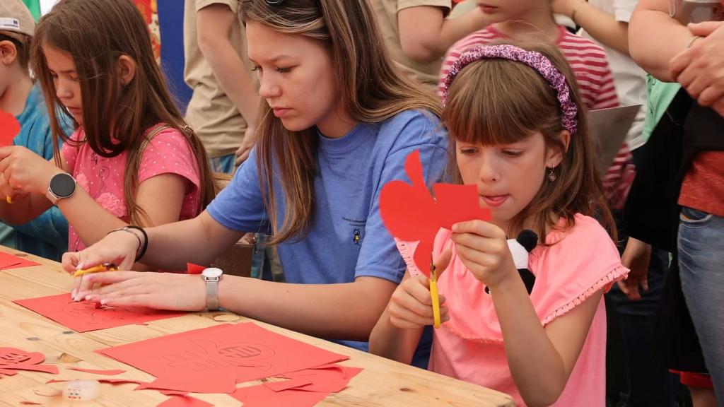 中国结、红灯笼、福字贴……带有浓浓中国风的帐篷内人头攒动,大人和孩子们一起投入地体验剪纸、十二生肖涂色、书法等中国传统文化。