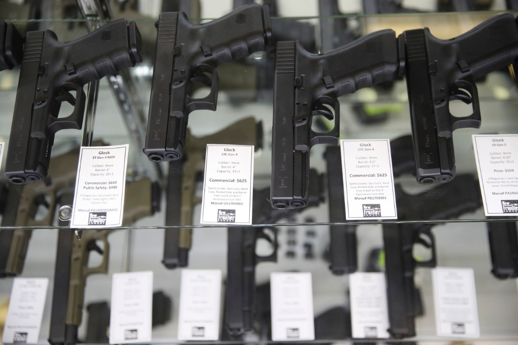 这是2017年10月4日在美国拉斯维加斯的“新前线”枪械商店拍摄的待售枪支。新华社记者王迎摄