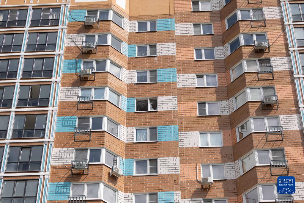 这是5月30日在俄罗斯首都莫斯科拍摄的受损楼房窗户。