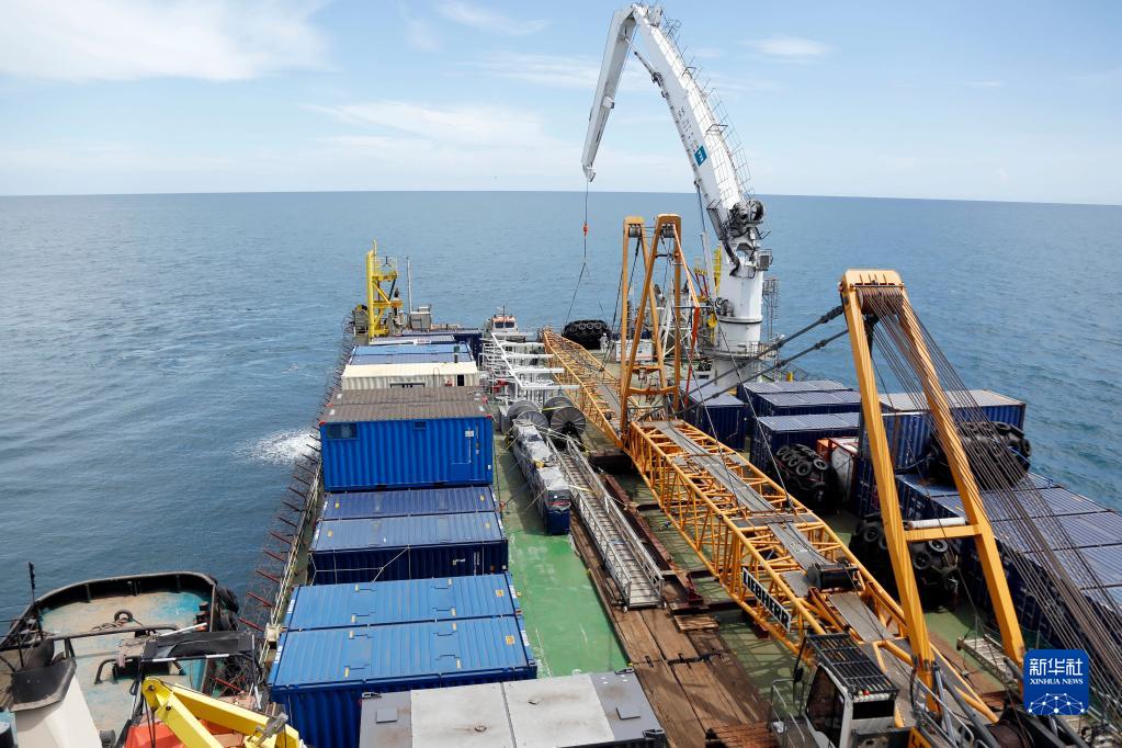 5月30日,联合国工程船抵达也门红海港口荷台达附近海域。