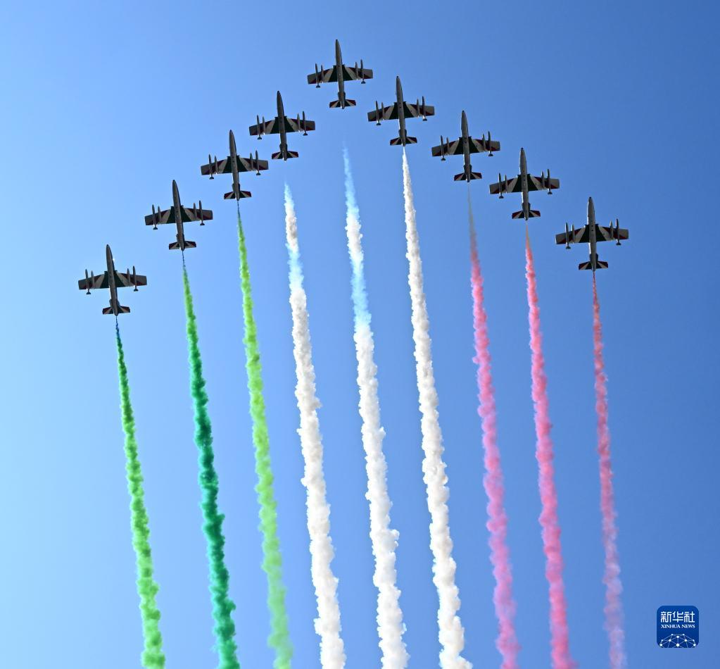 6月2日,意大利“三色箭”特技飞行表演队在罗马参加共和国日庆祝仪式。