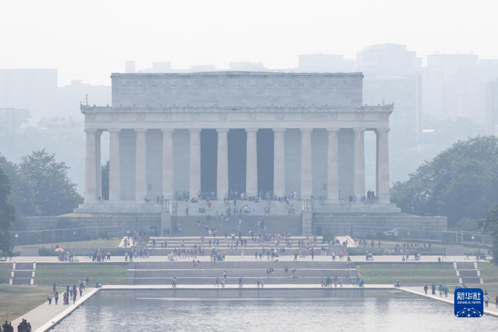 这是6月7日在美国首都华盛顿拍摄的烟尘笼罩的林肯纪念堂。