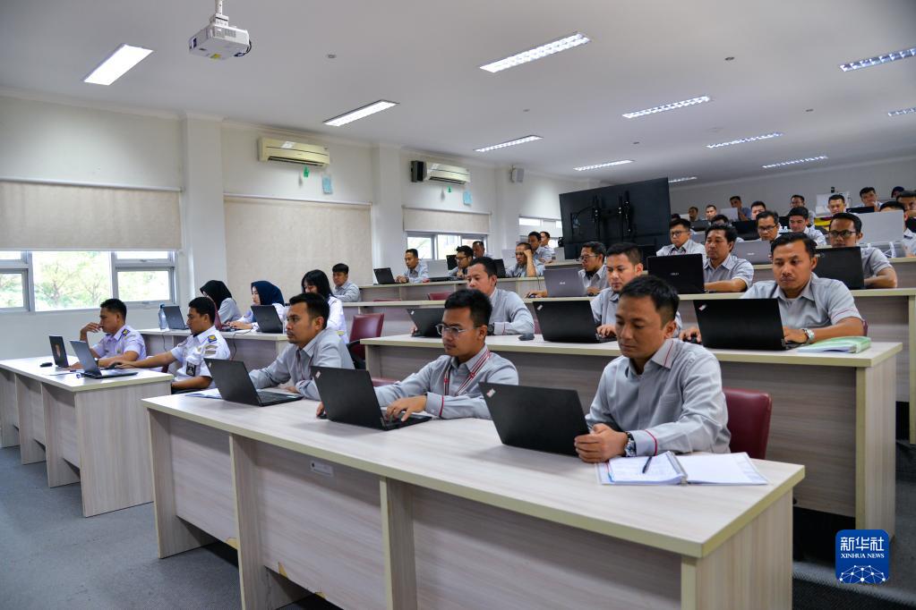 6月7日,在位于印度尼西亚茉莉芬市的印尼铁路理工学院,学员在接受雅万高铁运行控制中心调度人员培训。