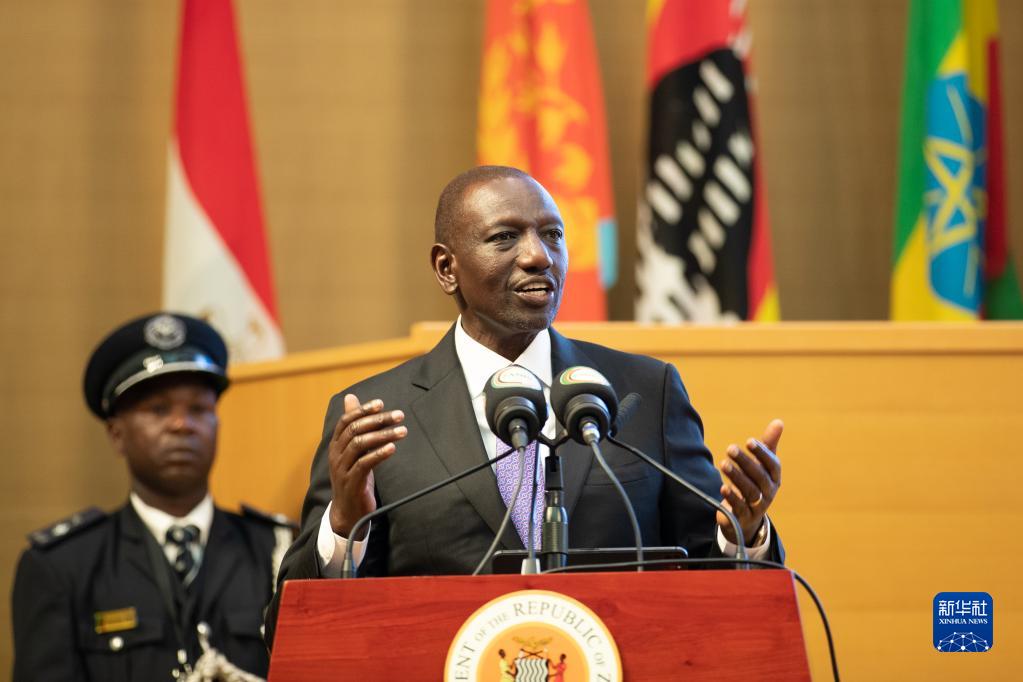 6月8日,在赞比亚首都卢萨卡,肯尼亚总统鲁托在第22届东南非共同市场成员国领导人峰会上致辞。