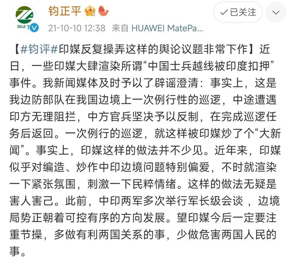 网友们可能对2021年印度媒体的无底线操作还有印象。当年中印第13轮军长级会谈之前,印度媒体屡屡造谣,大肆炒作所谓“中国士兵越线被扣”。我军方微博帐号“钧正平”发文,回击印媒反复操弄这样的舆论议题非常“下作”。