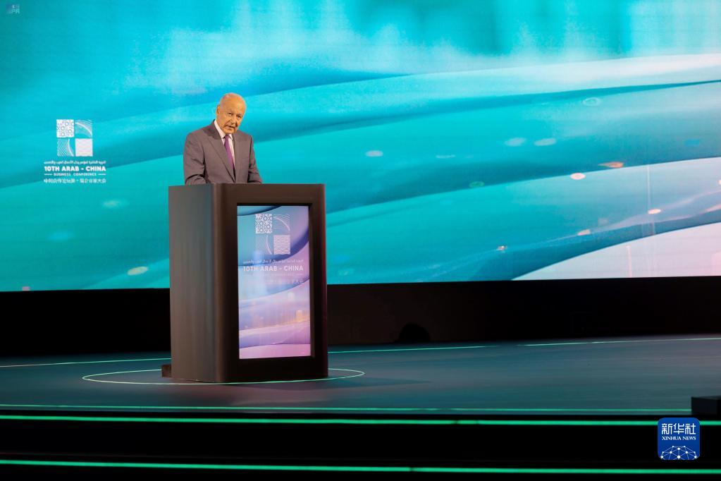 6月11日,阿拉伯国家联盟秘书长盖特在沙特阿拉伯利雅得举行的中阿合作论坛第十届企业家大会开幕式上致辞。