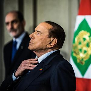 这张资料照片显示的是,2018年4月12日,意大利前总理贝卢斯科尼在罗马出席记者会。新华社记者 金宇 摄