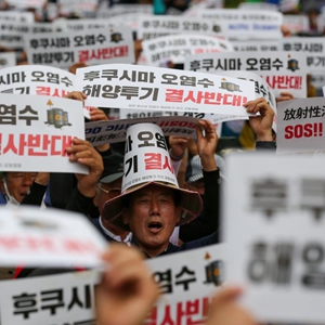 来自韩国各地的数千名渔民12日在首尔国会议事堂附近举行大规模集会,强烈反对日本福岛核污染水排海,同时敦促韩国政府积极保护韩国渔民权益。新华社记者 王益亮 摄