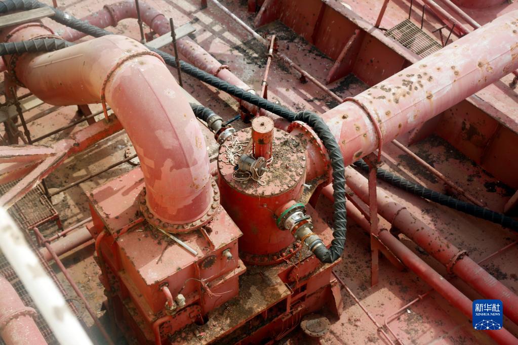 这是6月12日在也门荷台达附近海域拍摄的“萨菲尔”号油轮上的输油管。新华社发(穆罕默德·穆罕默德摄)