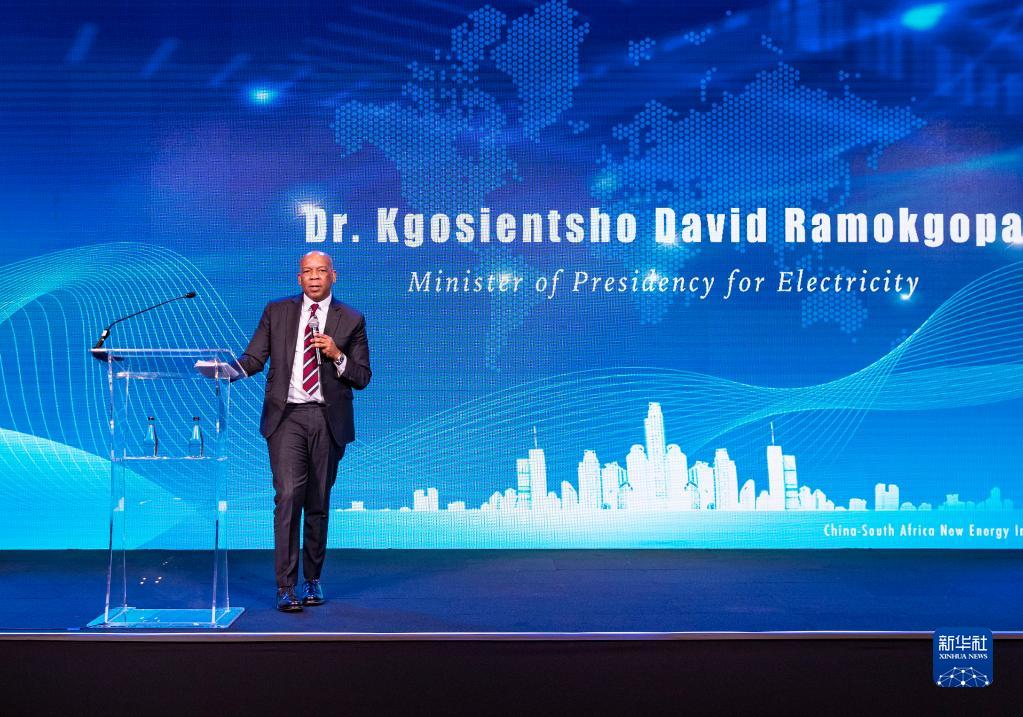 6月13日,在南非约翰内斯堡,南非总统府电力部长科西恩乔·拉莫科帕在中国-南非新能源投资合作大会上致辞。新华社记者 张誉东 摄