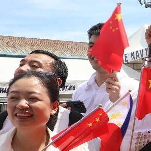 6月14日,在菲律宾马尼拉港,戚继光舰船员向前来迎接的群众挥手致意。