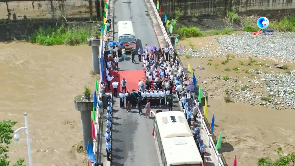 6月13日“中国金平-越南莱州”国际道路客运班线开通仪式在金水河口岸中越友谊大桥举行。