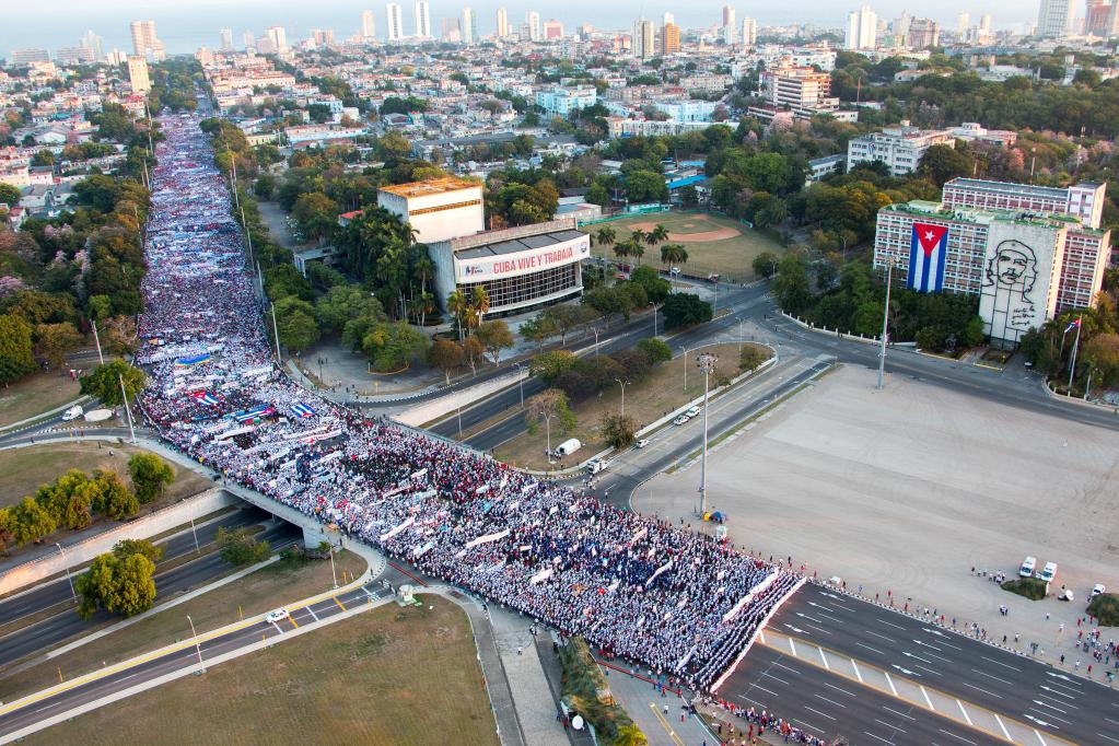 2022年5月1日,古巴举行“五一”集会游行反对美国制裁。新华社发(华金·埃尔南德斯摄)