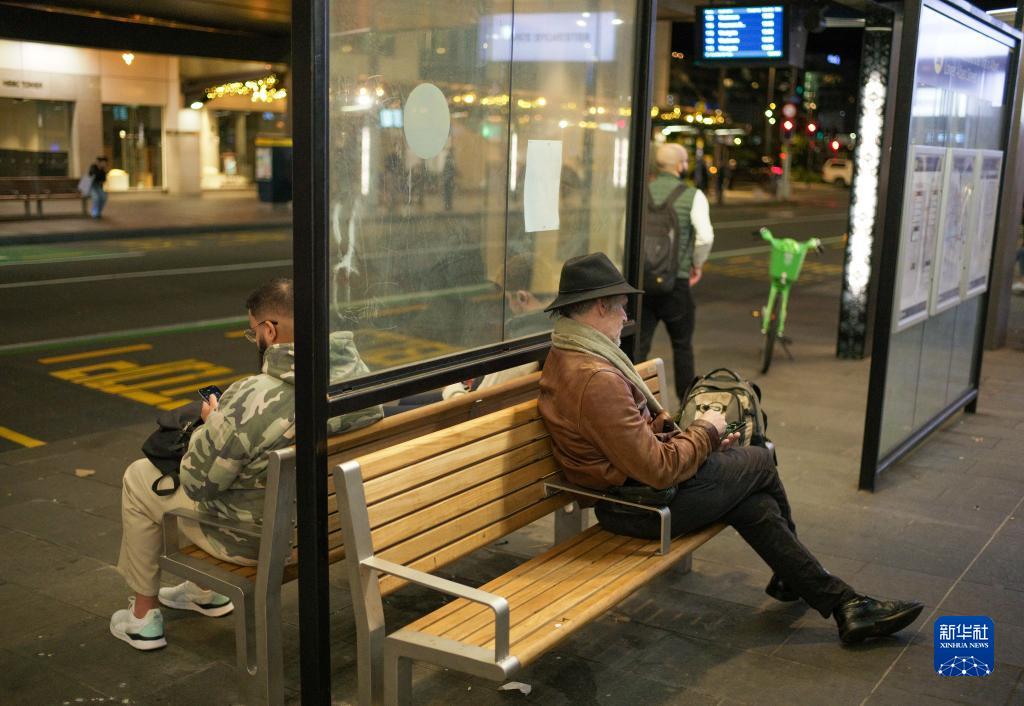6月15日,人们在新西兰奥克兰一处公交车站候车。新华社发(赵纲摄)