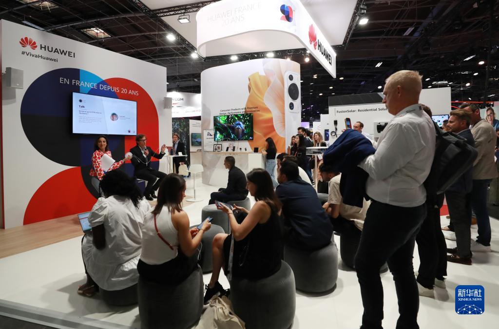 6月15日,在法国巴黎凡尔赛门展览中心,人们在“科技万岁”科技创新展上的华为展台参观。