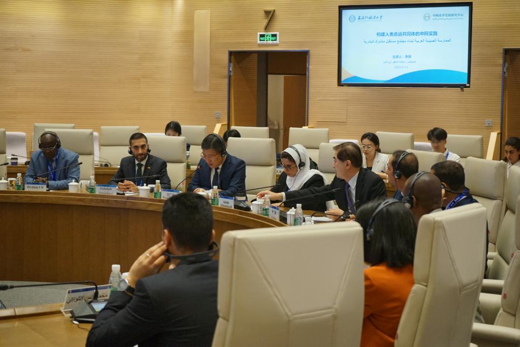 阿拉伯国家外交官聆听《构建人类命运共同体的中阿实践》专题讲座。 (中阿改革发展研究中心供图)