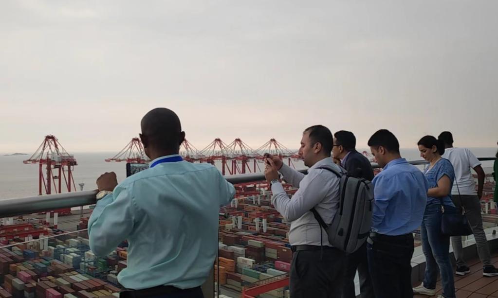 洋山深水港是上海国际航运中心建设的核心工程,也是全球综合自动化程度最高的码头之一。在上港集团尚东分公司,研修班学员俯瞰整个洋山港,为港口自动化运作的壮观景象所吸引。