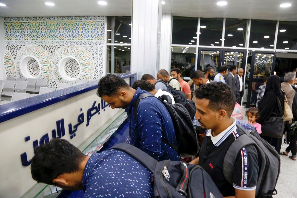 5月14日,从苏丹撤离的也门公民抵达萨那国际机场。新华社发(穆罕默德·穆罕默德摄)