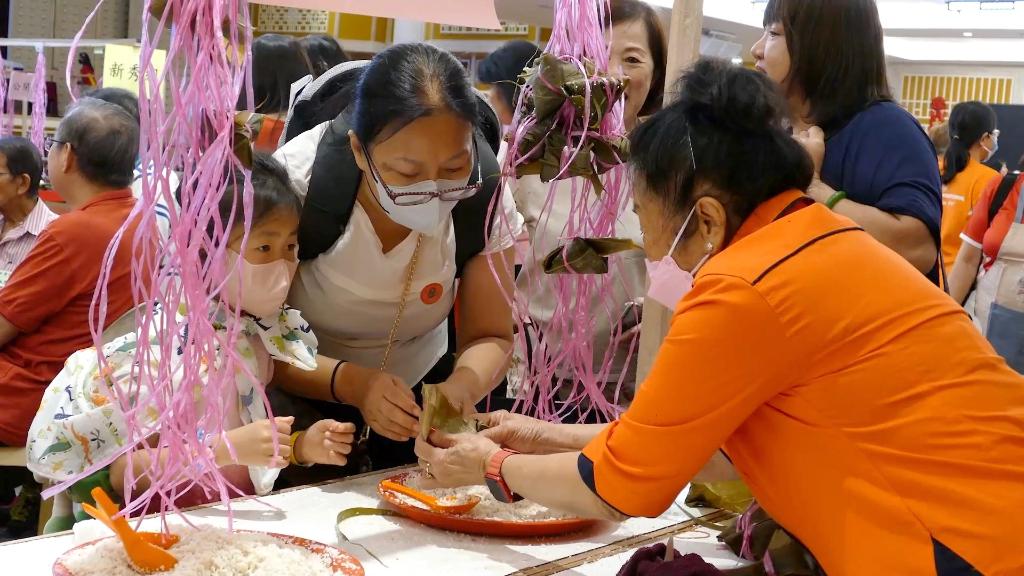 现场还为公众开设了裹粽教学体验活动以及家乡风味粽子展销会,让民众了解粽子所蕴含的文化内涵。