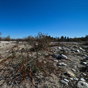 这是3月25日在意大利皮埃蒙特大区拍摄的干涸的杰索河河床。新华社发(费德里科·塔尔迪托摄)