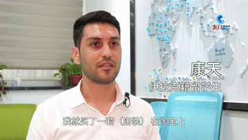 伊拉克留学生康天穿上喜气洋洋的唐装后 笑得很自信