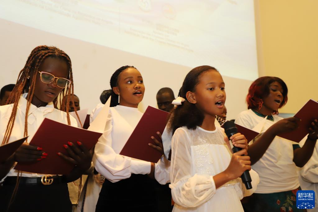 6月21日,在安哥拉首都罗安达,安哥拉汉语学习者为“汉语桥”比赛演唱开幕歌曲。新华社记者 吕诚成 摄