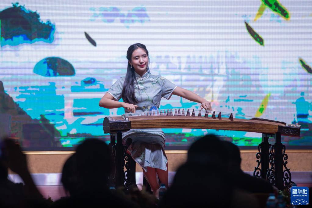 6月20日,在老挝万象,一等奖获得者在第22届“汉语桥”世界大学生中文比赛老挝赛区决赛上进行才艺表演。新华社发(凯乔摄)