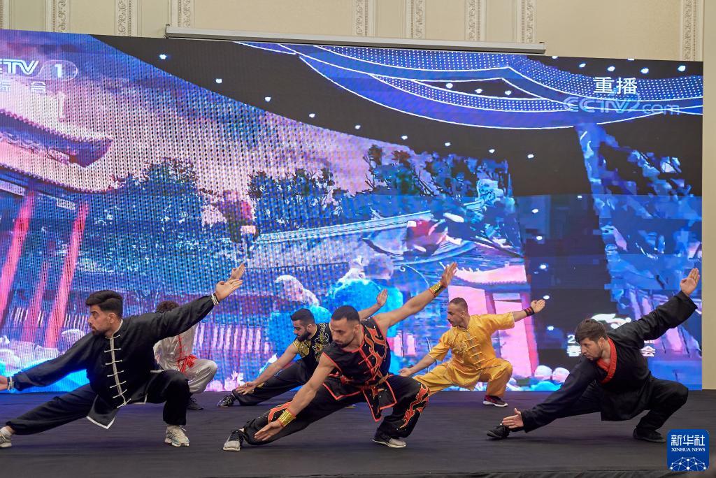 6月19日,在伊拉克埃尔比勒,青年在第22届“汉语桥”世界大学生中文比赛伊拉克库尔德地区(库区)决赛开幕式上表演武术。新华社发(中国驻埃尔比勒总领馆供图)