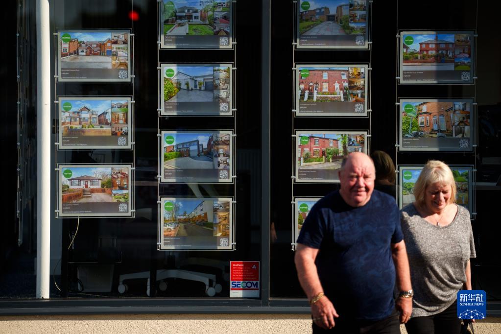 6月22日,人们经过英国曼彻斯特一家房屋中介门店。新华社发(乔恩·休珀摄)